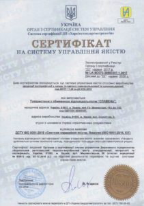 Поспішаємо поділитися з Вами радісною новиною! Система менеджменту підприємства сертифікована на відповідність вимогам міжнародного стандарту ISO 9001 діє до: 2015 «Система управління якістю». На підприємстві розроблена система контролю і управління системними процесами на виробництві.